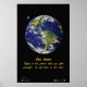 Dieses Poster hat ein fotografisches Bild der Erde, das die von der NASA freigegebene Western-Hemisphäre zeigt. Es beinhaltet die umweltschonende Botschaft "Unsere Zuhause: Genießen Sie es, aber bitte bereinigen Sie sich nach Ihnen, wir alle müssen hier leben".