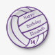 Diese individuellen Volleyball-Geburtstagsparty-Teller verfügen über eine einfache Volleyball-Grafik mit weißen Paneelen, auf denen Sie Ihren Text anpassen können - die Nähte des Volleyballs werden durch einen lila Hintergrund repräsentiert, den Sie leicht an jede beliebige Farbe anpassen können und dann die Textfarbe an die jeweilige Farbe anpassen können - durch katz_d_zynes