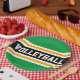 Dieses sportliche Design zeichnet sich durch feinen VOLLEYBALL-Text in einem breiten schwarzen, horizontalen Mitte-Rennstreifen aus, der mit schwebenden weißen und goldgelben Streifen gegen leuchtend grüne Außenstreifen hervorgehoben wurde. Der Text kann personalisiert sein.