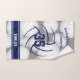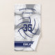Choose your own colors! This hand towel for a volleyball player features easy-to-personalize athlete name and jersey number plus team name overlying the background image of a bunch of randomly arranged volleyballs on a gray background - the volleyballs are white with selective shading to give them a 3D appearance - the minimalist image of a volleyball (as represented by its seams only in navy blue) is centered on the towel - the team mascot name can be personalized on horizontal navy varsity stripes at the bottom edge of the towel. Excluding the background cluster of volleyballs, ALL colors can be customized to match the volleyball team's colors or an athlete's favorite colors using the Zazzle design tool--press the "Edit this design" button above to access the Zazzle design tool where you change the towel's background color, the color of the varsity stripes, all text colors, and the color of the minimalist volleyball at the center of the towel - by katz_d_zynes