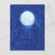 Postkarte mit Aquarellbild eines Vollmonds auf dem klaren Nachthimmel mit Sternen.