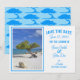 Dieses schöne Design wurde ursprünglich für eine Destination-Wedding-Save-the-Date-Einladung erstellt. Jetzt mit vollständig bearbeitbarem Text für jeden Anlass. Es zeigt einen vom Wind gebogenen Divi-Divi-Baum aus Aruba. Der Baum ist auf vielen karibischen Inseln zu finden, aber in Aruba wachsen die Bäume aufgrund der Passatwinde in südwestlicher Richtung. Folgen Sie den zeigenden Bäumen zum Strand, egal wo Sie sich auf der Insel befinden.