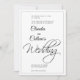 Eine Hochzeitseinladung mit einer lebendigen Skriptkalligraphie für Titel mit einem kleinen, untertönten Großbuchstaben san serif Schriftart für den Körper. Diese Einladung hat keinen Hintergrund und kann durch Hinzufügen einer Farbe oder eines Hintergrunds angepasst werden.
