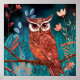 Vom Künstler handillustrierte Eule – Boho Natur Poster