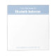 Das Bild vom Schreibtisch des Notizblocks hat oben weißen Bildschirmtext. Die obere Hälfte ist Baby blau. Im blauen Bereich befinden sich zwei Zeilen weißem Bildschirmtext. In der obersten Zeile steht "From the Desk Of". Die zweite Zeile bezieht sich auf den Namen des Empfängers. Unten sehen Sie einen blauen Babybildschirm mit Kontaktinformationen wie E-Mail-Adresse und Telefonnummer.