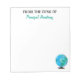 Aquarell Globe Personalisiert School Hauptmerkmal Notepad von Papier. Eine blaue und grüne Welt für den weltberühmten Prinzen. Vom Schreibtisch der ist in grau geschrieben und Principals Name ist in einem grünen Skript geschrieben. Der Globus befindet sich in der unteren rechten Ecke des Notizblocks. Ein praktisches und unterhaltsames personalisiertes Geschenk für einen Grundschullehrer, eine Mittelschule oder einen Schulleiter. www.SamAnnDesigns.com