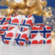 Norwegisches Herz formte Entwurf in den Farben der Flagge von Norwegen, von Rot und von Blau. Von den skandinavischen Geschenken.