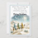 Geführt von Glory Christmas Holiday Card Drei weise Männer reisen durch die Wüste, geleitet von dem Stern in uralter Prophezeiung vorhergesagt. Sie sind mit Roben der Unterscheidung bekleidet und durchqueren den Sand feierlich, mit Geschenken für den neugeborenen König. Der strahlende Stern oben führt nicht nur, er erfüllt die Worte der Propheten und markiert die Ankunft von Emmanuel. Diese heilige Prozession spiegelt die göttliche Orchestrierung der Geburt Christi wider, wo Himmel und Erde in heiligem Wunder zusammenlaufen.