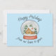 Whimsical Weihnachtskarten-Design bietet Hütte in der Schneeglobe-Szene aus Holz mit "Happy Holidays from our Zuhause to your" anpassbaren Text