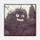 Ein humorvoller Stummel auf dem Parkplatz eines Voodoos Donuts im Südosten von Portland, Oregon. Dieser Busch ist geprägt als ihr berühmter "Voodoo Doll Donut" mit Augen & Zähnen. Ich bin ein großer Fan ihrer Donuts, und liebte dieses clevere Gartendekor!