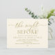 Mit unserem modernen, gelben Motiv-Design (The Night Before) Hochzeitsfeier Probe Einladungskarte verkünden Sie Ihre Freude, die Sie sich wünschen. Es ist ideal für Paare, die sich entschieden haben, die Nacht vor ihrem großen Tag zu feiern. Mit seinem ausgeklügelten und spielerischen Design wird diese Einladung den Ton für ein unvergessliches Ereignis Set. Die Einladungskarte bietet modernes romantisches Drehbuchdesign und verleiht Ihrem Fest eine Touch zeitloser Eleganz. Designed by TeeshaDerrick