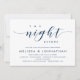 Mit unserem modernen Theme Design (The Night Before) Hochzeitsfeier Probe Einladungskarte verkünden Sie Ihre Freude, die Sie je hatten. Es ist ideal für Paare, die sich entschieden haben, die Nacht vor ihrem großen Tag zu feiern. Mit seinem ausgeklügelten und spielerischen Design wird diese Einladung den Ton für ein unvergessliches Ereignis Set. Die Einladungskarte bietet modernes, elegantes Drehbuchdesign, das Ihren Feiern eine Touch zeitloser Eleganz verleiht. Designed by TeeshaDerrick