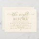 Mit unserem modernen, gelben Motiv-Design (The Night Before) Hochzeitsfeier Probe Einladungskarte verkünden Sie Ihre Freude, die Sie sich wünschen. Es ist ideal für Paare, die sich entschieden haben, die Nacht vor ihrem großen Tag zu feiern. Mit seinem ausgeklügelten und spielerischen Design wird diese Einladung den Ton für ein unvergessliches Ereignis Set. Die Einladungskarte bietet modernes romantisches Drehbuchdesign und verleiht Ihrem Fest eine Touch zeitloser Eleganz. Designed by TeeshaDerrick