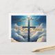 Blaues Gold kreuzen zwischen flauschigen Wolken mit Typografie-Design.