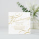 Alle kundenspezifischen Text- und Einladungsdetails sind auf der unteren Hälfte der Karte. Die Rückseite der Karte kennzeichnet ein volles vorbereitetes Kalligraphiemuster.