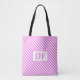 Diese modische Tasche mit rosa und weißen Streifen verleiht ihr einen zeitlosen und trendigen Look. Fügen Sie Ihre Initialen hinzu, um es einzigartig zu machen. Ob Sie nun im Einkaufszentrum, im Lebensmittelgeschäft oder einem lässigen Ausflug sind, diese Tasche ist das perfekte Accessoire, um Ihr Outfit zu vervollständigen und Ihre Essenzen an einem Ort behalten. Machen Sie eine Erklärung und bestellen Sie noch heute!
