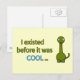 Ein lustiger grüner Dinosaurier mit freundlichem Aussehen und einer lustigen Botschaft: Ich bestand, bevor es cool war. Dies ist ein Witz, der sich darauf bezieht, dass Dinosaurier vor der Eiszeit lebten, und auch eine großartige Möglichkeit, jemandem zu zeigen, wie cool und weise Sie sind.