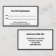 Dieser berufliche Arztbesuchskarte ist zweiseitig. Beide Seiten haben eine schwarze Grenze. Auf der einen Seite steht "Ihr nächster Termin" und hat Zeilen für Datum und Uhrzeit des Termins. Am unteren Rand können Sie Text anzeigen, um eine benutzerdefinierte Nachricht zu erstellen, falls gewünscht. (Angezeigt: Bitte geben Sie 24 Stunden im Voraus an, wenn Sie Ihren Termin nicht behalten haben.) Auf Seite zwei wird Text angezeigt, der durch den Namen des Arztes (oder den Namen der medizinischen Praxis) und dessen Anschrift, Telefonnummer und Website ersetzt werden soll. Alle Texte können bearbeitet oder gelöscht werden. Der Text ist schwarz.