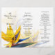Der Vogel des Paradieses Hochzeitsprogramm zu falten, um zu dritt. Hübsche, exotische gelbe Blumen schmücken Papier mit drei Textabschnitten mit Vorlagen. Das Papier wird (durch den Kunden) im Akkordeon-Stil mit einer Vorder-, Mittel- und Letztseite gefaltet. Text ist schwarz mit Titel, Namen, Ort und Datum auf der Vorderseite. Die mittlere Sektion ist für die Zeremonie Ordnung und die letzte Seite ist für die Auflistung der Amtsinhaber, Eltern und Hochzeitsfeier.