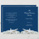 Navy und Weiß, Seesterne und weiße Hydrangeas, Hochzeitsprogramm Vorlage. Dunkelblaues Papier enthält weißen Text als Beispielsatz auf vier Seiten dieses Papiers, der in der Mitte gefaltet wird. Der Boden der Vorder- und Rückseite hat eine weiße Hydrangea und Seesterne. Karo bitte alle Texte sorgfältig, bevor du sie zu den Vorlagen hinzufügst, da Zazzle vor dem Drucken und Versand keine Korrekturlesen vornimmt. Ändern Sie bitte nicht den Papiertyp, da das schwerere Papier schwer zu falten ist.