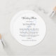 Rund oder quadratisch, Hochzeitsmenü Vorlage mit Monogramm Initial in hellblau Farbe. Weiße Karten mit schwarzem Skript für den Titel und gedruckter Text für die Menüliste. Verwenden Sie Leerzeichen und Großbuchstaben für Abschnitte, oder ändern Sie den Wortlaut nach Bedarf. Die Hochzeitsmonogramm des Paares wird in der Mitte hinter der Formulierung gedruckt. Umgekehrt ist hellblaue Farbe, um die erste Farbe.