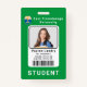 Ein modernes minimalistisches Schüler-ID-Abzeichen. Das Design zeigt das Logo und den Namen Ihrer Schule. Es zeigt ein großes studentisches Foto. Die Informationen können personalisiert sein und beinhalten bis jetzt den Namen des Schülers, die ID-Nummer, das ausgegebene Datum und das Ablaufdatum, unter dem ein Strichcode liegt. Am unteren Ende zeigt es die Benennung des Schülers. Auf der Rückseite des Abzeichens befindet sich QR-Code, den Sie verwenden können. Sie können alles, was Sie gewollt haben, z.B. einen Lehrplan, ein Studentenportfolio oder QR-Codes, die Ihre Professoren zur Verfügung stellen. Dieses Abzeichen würde auch für Lehrer funktionieren. Personalisieren Sie die Designelemente und Farben, um Ihre Schule zu treffen und löschen Sie, was Sie nicht brauchen! Farbe: grün