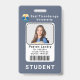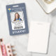 Ein modernes minimalistisches Schüler-ID-Abzeichen. Das Design zeigt das Logo und den Namen Ihrer Schule. Es zeigt ein großes studentisches Foto. Die Informationen können personalisiert sein und beinhalten bis jetzt den Namen des Schülers, die ID-Nummer, das ausgegebene Datum und das Ablaufdatum, unter dem ein Strichcode liegt. Am unteren Ende zeigt es die Benennung des Schülers. Auf der Rückseite des Abzeichens befindet sich QR-Code, den Sie verwenden können. Sie können alles, was Sie gewollt haben, z.B. einen Lehrplan, ein Studentenportfolio oder QR-Codes, die Ihre Professoren zur Verfügung stellen. Dieses Abzeichen würde auch für Lehrer funktionieren. Personalisieren Sie die Designelemente und Farben, um Ihre Schule zu treffen und löschen Sie, was Sie nicht brauchen! Farbe: grün