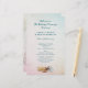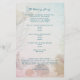 Hochzeitsprogramm für Lebende Meere, gedruckt auf bezahlbarem Papier. Stellen Sie Text auf beiden Seiten über einen Gradientenhintergrund mit Muscheln auf der Vorderseite und mehr Meeresleben auf der Rückseite ein. Text ist Tiefseeblau und wechselt zwischen Skript und gedruckten Schriftart. Auf der Rückseite ist Platz für eine kurze Nachricht des Paares. Das Papier hat eine Größe von 5,5 x 8,5.