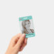 Ein minimalistisches und einfaches Design mit aquamarinem Hintergrund, großem Foto, Strichcode und Logo-Vorlage. Passen Sie dieses Abzeichen einfach an Ihre Marke an. - mit Zaubershirts ausgelegt
