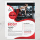 Berufliche Fitness Club Flyer Vorlage zur Förderung von Gymnastik, Personal Training und Trainingsprogramme mit einem modernen und energetischen Layout. Ideal für Marketing-, Wellness- und Fitness-Service.