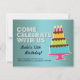 Kommen Sie feiern mit uns ... Blauer, vielfarbiger, Geburtstagskarten Einladungsvorlage.