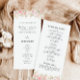 Mit unserer Vorlage für Hochzeitsprogramme können Sie Ihre Lieben durch jeden Schritt Ihrer Zeremonie führen. Die Namen von Ihnen und Ihrem Partner drehen sich oben auf jeder Karte mit Ihren unvergesslichen Momenten. Passend zu Ihrem Hochzeitsthema, wenn Sie mit unendlichen Farbkombinationen und Schriftart anpassen!