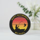 Silhouette eines Mannes in einem Boot angeln und fangen einen großen Bassfisch silhouetted gegen einen Retro-Stil Sonnenuntergang. Mit dieser Vorlage können Sie die Farben anpassen und den Text "Happy Retirement Michael" personalisieren.