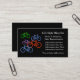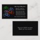 Helle und farbenfrohe Fahrräder in Rot, Grün, Blau und lila zieren die links Seite dieser Visitenkarte. Auf der rechten Seite befindet sich Ihr leicht angepasster Geschäftstext in Weiß. Die Bilder und der Text werden auf einem dramatischen schwarzen Hintergrund platziert. Die Rückseite der Karte ist ebenfalls schwarz, mit einem zusätzlichen Informationsfeld, falls Sie es benötigen. Perfekt für jedes Geschäft, das sich um Fahrräder dreht, oder nur zum Spaß!