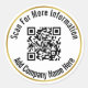 Sie können Ihre URL eingeben, um den QR-Code so zu ändern, dass er auf Ihre Website geht. In der obersten Zeile des Anzeigetextes steht "Nach weiteren Informationen suchen". Die untere Zeile des Anzeigetextes ist für Ihren Firmennamen oder eine benutzerdefinierte Nachricht. Die Goldgrenze der Imitate besteht nicht aus Folie. Der Text ist schwarz. Der Aufkleber ist weiß.