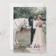 Diese Vintage Fotovorlage Save the Date ist perfekt für eine minimalistische Hochzeit. Das romantische Schwarz-Weiß-Design besticht durch eine einzigartige whimsical Typografie mit schlichter böhmischer Optik. Anpassbar in jeder Farbe. Behalt das Design minimal und elegant, wie es ist, oder personalisiere es durch Hinzufügen von eigenen Grafiken und Kunstwerken.