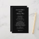 Einfache schwarze Hochzeitskarte. Weißer Text in modernen Schriftart mit leicht zu füllenden Vorlagenbereichen. Die Namen oben und das Hochzeitsdatum unten. Fügen Sie Vorspeisen, Kurse, Vorspeisen, Wüste, etc., wie Sie möchten, um die Mitte der Zeitung füllen. Es gelten Massenermäßigungen. Sehen Sie unten das kleinere 4x5 Zoll Menü.