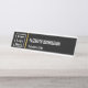 Es ist einfach, den weißen Text auf diesem schwarzen Namensschild anzupassen. (Füllen Sie einfach die Felder rechts aus.) Es gibt einen Ort, um deinen Namen einzutragen. Unter Ihrem Namen können Sie Ihren Titel hinzufügen. Zu den , gibt es ein Display-Bild können Sie ersetzen, um Ihr Logo hinzuzufügen. Ein Imitat (nicht Folien) Goldstreifen trennt den Logo-Bereich vom Bereich für den Namen und Titel.