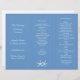 Blaue dreifach geflieste Hochzeitsprogramme Vorlagen. Zwei Seesterne schmücken dieses Strand- oder Sommerkonzert. Verwenden Sie die Vorlagenlinien, um Ereignisinformationen in drei Bereichen für Ihren speziellen Tag anzupassen. ** Die blaue Farbe wird nur auf einer Seite dieses Papiers angezeigt - die Rückseite ist weiß. Auf Leinenpapier abgebildet, das gewechselt werden kann.
