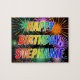 Dieses lebendige und lebendige Jigsaw Puzzle Design hat die Nachricht "HAPPY BIRTHDAY, STEPHANIE" mit einem farbenfrohen Regenbogenmuster inspiriert, und einem lustigen, berüchtigten, feierlichen Feuerwerk inspiriert Hintergrundmuster. Ein lebendiges Rätsel wie dieses könnte eine lustige Art sein, Geburtstagsgrüße an jemanden namens Stephanie zu schicken. [~Z0000465]