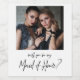 Schlichte, elegante und stilvolle Weine-Flaschen-Etiketten aus schwarz-weißer Trauzeugin. Design bietet Single Foto und ''wirst du meine Trauzeugin'' in trendiger handgeschriebener Schrift.