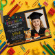 Feiern Sie einen besonderen Meilenstein mit dieser reizvollen Vorschulabschlussfeier! Es ist mit einem charmanten Chalkboard-Thema gestaltet und verfügt über farbenfrohe Stars, eine weise Eule, Bücher, einen Apfel und eine Graduierungskappe, die sich perfekt für die Freude der frühen Bildung eignet. Ideal für eine lustige Veranstaltung mit Spielen und Leckereien, ist diese Einladung für einen unvergesslichen Tag zugeschnitten.