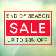 Verkäufer Schild Fensterheber mit anpassbarem Text "Ende der Saison Verkauf. Bis zu 50 Prozent Ermäßigung" mit einem roten Rand. Setzen Sie das Fenster Ihres Unternehmens ein, um aktuelle Verkäufe anzukündigen.