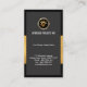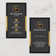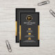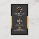 Ein einfacher kreativer Entwurf. In einem grauen Hintergrund wird die Karte durch eine schwarze Grenze eingekapselt, die mit Goldstreifen verflochten wird. Die Sozialmediumikonen im Mittelteil der Karte ist Imitatgold. An der Spitze haben Sie ein Logo mit Ihrem Namen und Stellenbezeichnung. Direkt unter sind Ihre Kontaktdetails, jedes, das einem Imitatgoldikonenknopf. zugeteilt wird.