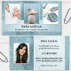 Carte de visite avec vos propres photos personnalisées (en option) encadrées par un design bleu élégant. Sur le dos, vous devez remplacer la photo modèle. Un beau carte de visite pour une infirmière privée ou un soignant principal ou, avec d'autres photos, pour tout autre professionnel.