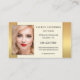 Carte de visite avec 4 de vos propres photos dans un portfolio sur un design arrière - plan or et crème. Belle pour un coiffeur, maquilleur, salon de ongles ou autre professionnel de beauté.