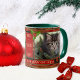 Cute tasse avec photos de vos chats (en option) encadrée par un design de Noël en or, bois rustique et bourgogne classe. Les images sacrées et les pattes stylisées de chat sont également optionnelles. Un beau cadeau pour un amoureux des chats. Je vous souhaite un Catmas parfait !