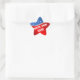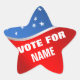 Votez pour - ajoutez votre nom personnalisé pour un autocollant de campagne pour n'importe quel type d'élection. Autocollant en forme d'étoile avec arrière - plan de drapeau abstrait avec rouge au fond et étoiles blanches au dessus bleu.