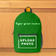 Sac à dos couleur verte que vous pouvez customiser pour mettre votre nom et votre photo. Veuillez vérifier l'apparence après avoir tapé votre nom et télécharger votre photo. Si l'apparence vous plaît, vous pouvez passer votre commande maintenant. Si vous avez besoin de redimensionner et déplacer votre nom et photo pour s'adapter au modèle ou selon l'apparence que vous préférez, s'il vous plaît changer dans l'outil de conception. Des exemples de modifications que vous pouvez apporter à l'outil de conception sont la modification de la couleur arrière - plan, de la couleur de police et du style de police. Personnalisez-le. Prenez votre nom et votre photo dessus. Sac à dos pour transporter vos affaires n'importe où. Sac à dos comme sac de camping.