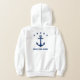 Filles sweat - shirt à capuche avec une ancre de navire classique personnalisée, 5 étoiles et votre nom personnalisé, nom de bateau ou autre texte souhaité en bleu marine sur blanc. Choisissez parmi plusieurs couleurs et faites des ajustements pour correspondre à votre équipement de bateau. Fait un grand cadeau pour toute occasion.